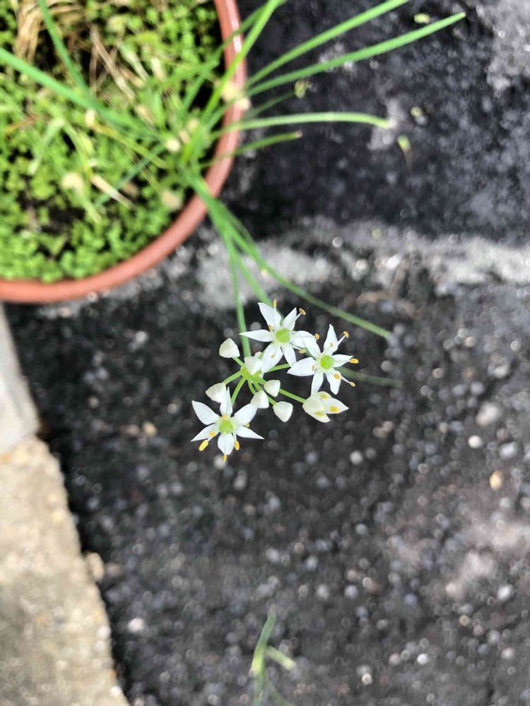 完全放置状態の鉢から小さな花が咲いてる❣️