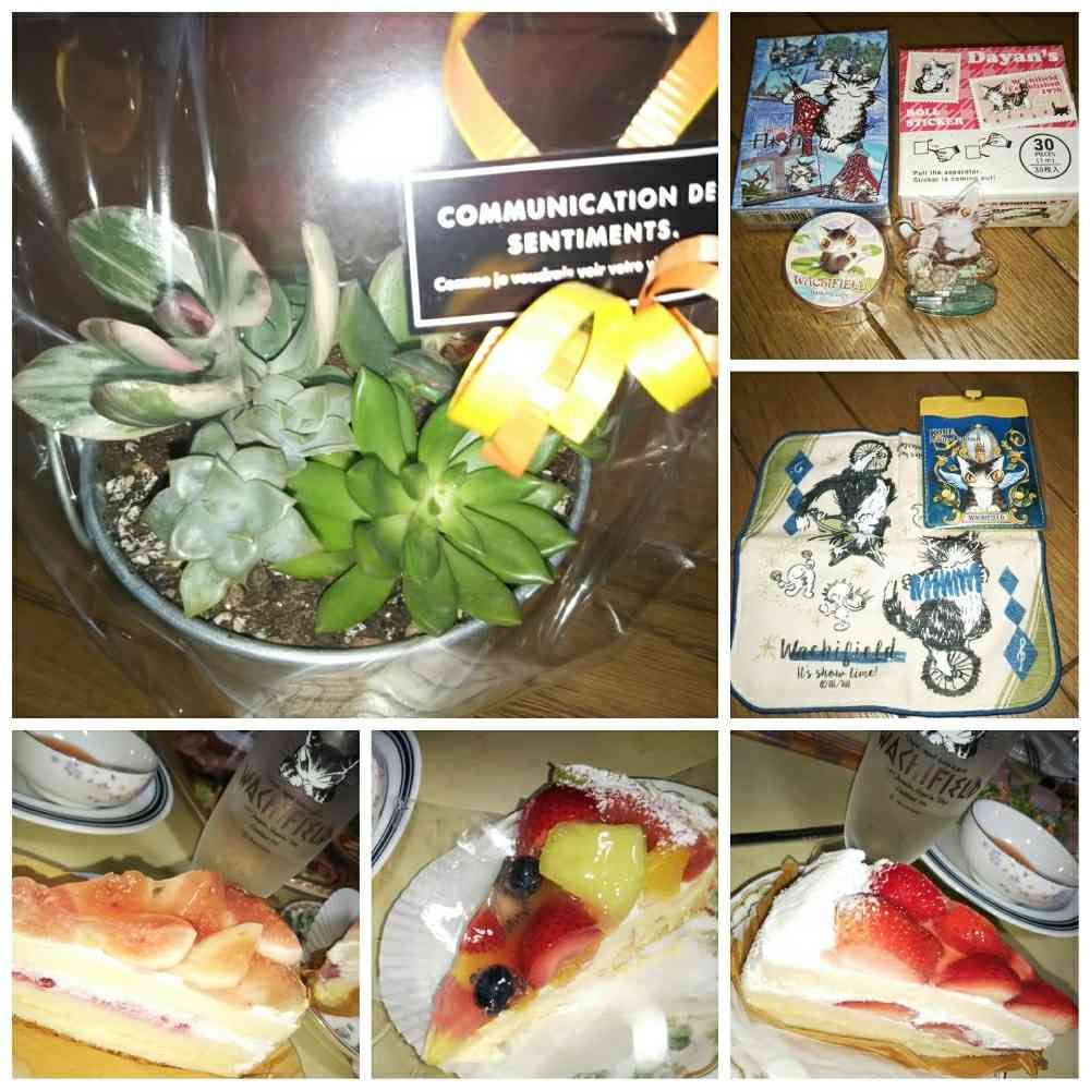 ブレゼントは、娘は多肉寄せ植えと右上のダヤン、旦那は神戸限定のダヤンのイラストの入った1面パス。