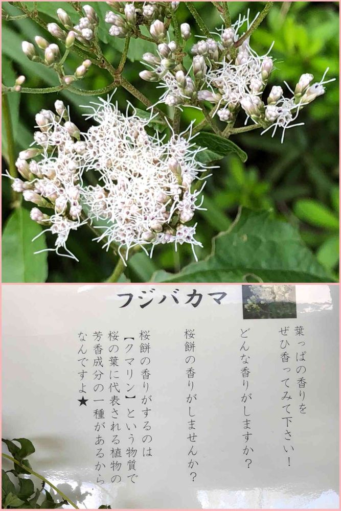 カットされたフジバカマが台の上に置いて有りました。においを嗅ぐと本当にさくら餅❣️