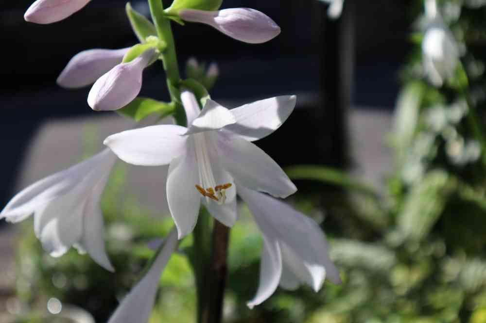 ほんのりピンクで花の大きさは同時に咲いているロイヤルスタンダードと同じくらいで茎からだと7〜8センチ。そして良い香り。この2つのギボウシは長い茎も花の姿も香りもよく似ています。この後まだまだ蕾がついているので悪あがきで丸い輪っかのついた支柱をつけてみました…持ちこたえてほしい🙏✨✨