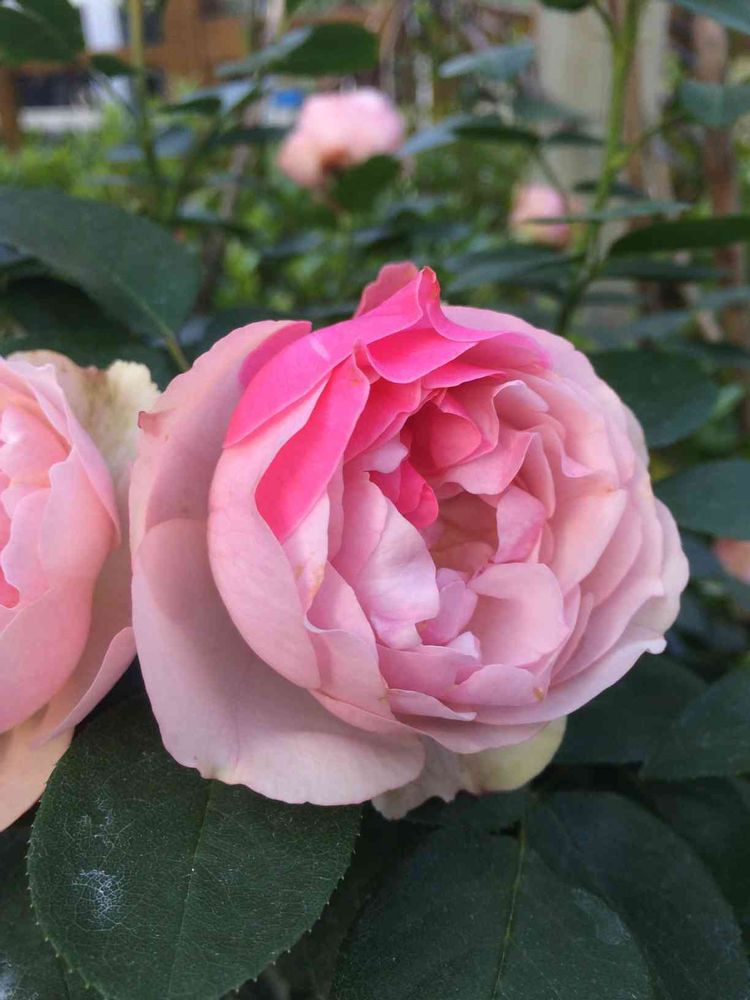 もう2ヶ月も前の写真。花弁の一部が色変わりしたイングリッシュローズ。クレアオースチンだったかなぁ?
