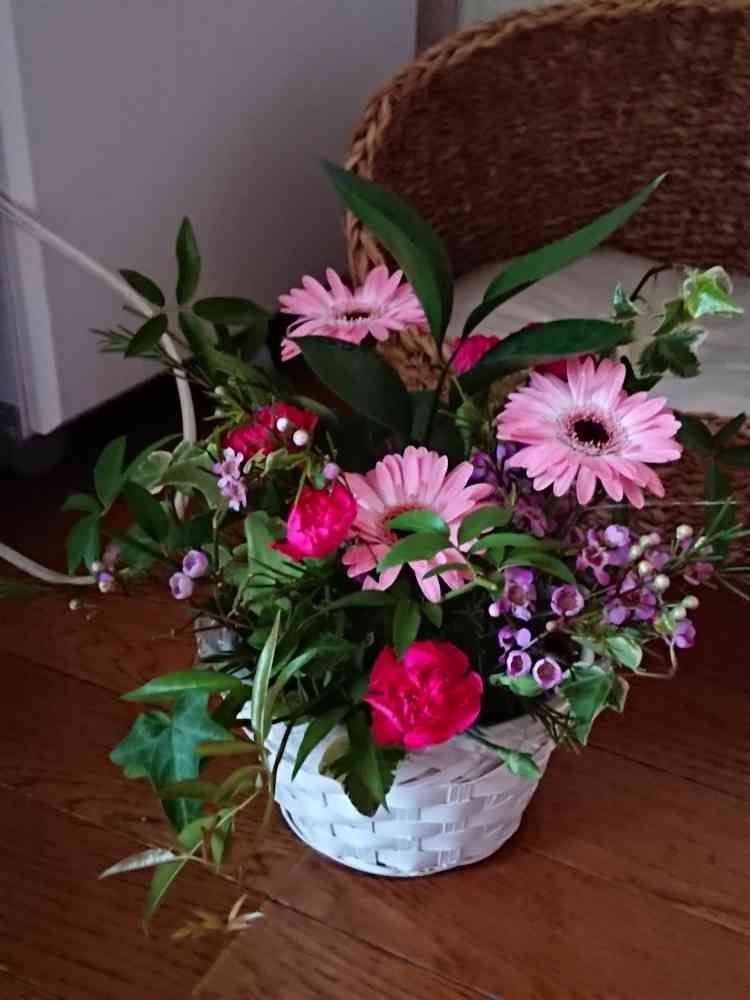 ベランダのモッコウバラ•レモン・アイビーを添えてアレンシしてQ太郎が使ってた猫ソファーの前に置きました。