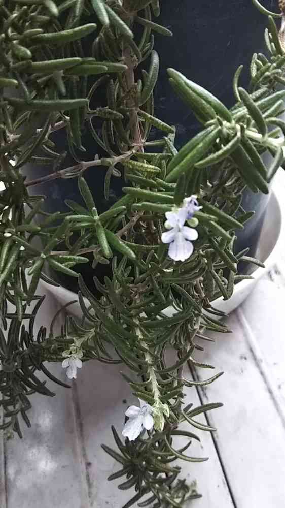 台風に備え早めの室内避難。ローズマリーが咲いていたの気づかなかった
