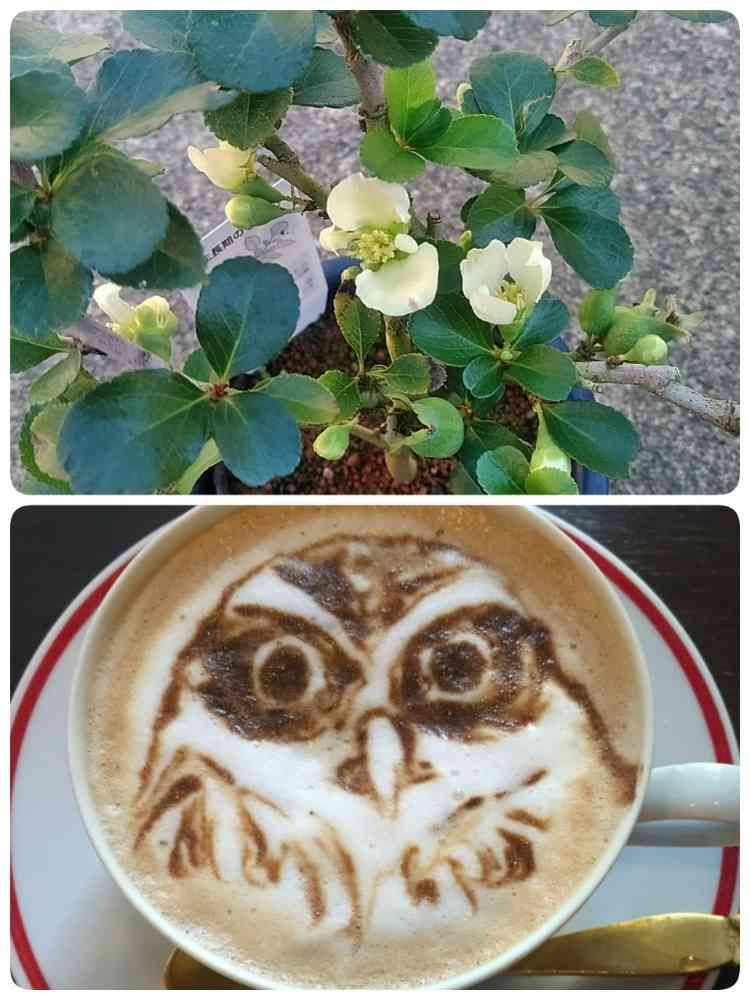 カフェのお姉さんが作ってくれた🦉☕美味しくいただいたので、今は写真だけで楽しんでいます🦉
