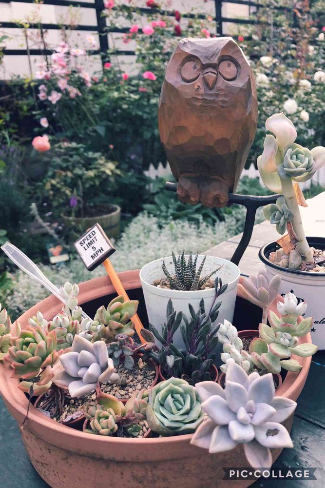 可愛い多肉ちゃんと木彫りのフクロウが可愛くて素敵ですよ~💛渋くないです。👍多肉ちゃんの紅葉も楽しみにしてますね~。🍁