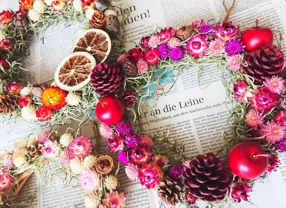 種から育てたセンニチコウとカイガラソウをたっぷり使って、リース作りました🏵️