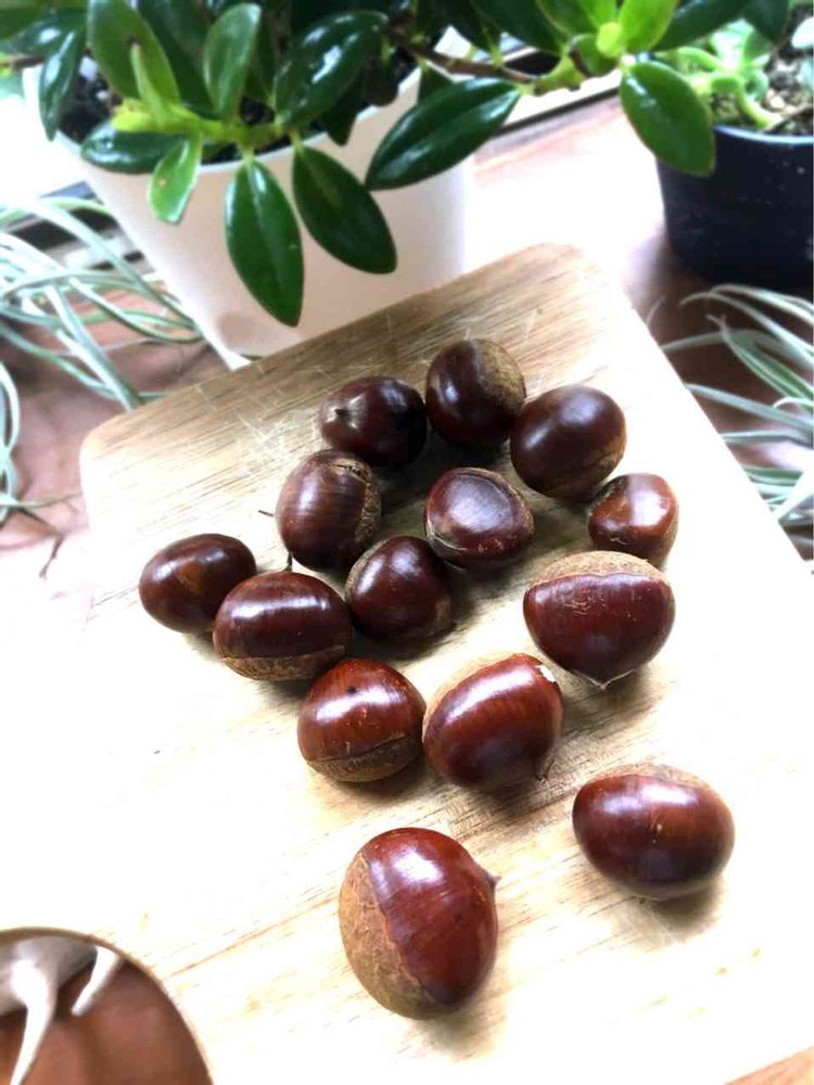 売ってる栗より🌰小さいんですが折角なので塩茹でして食べてみたら美味しかった〜‼️😆