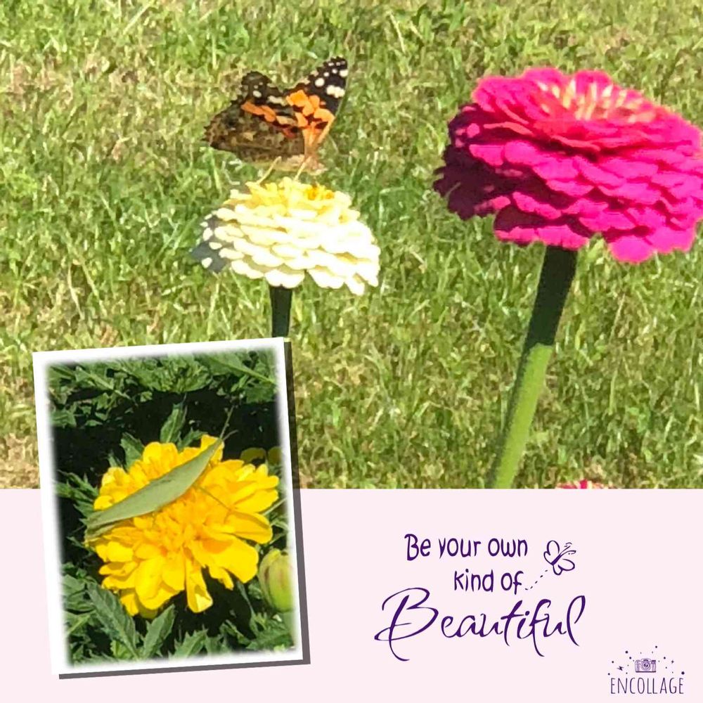🌸ヒメアカタテハと百日草🌼