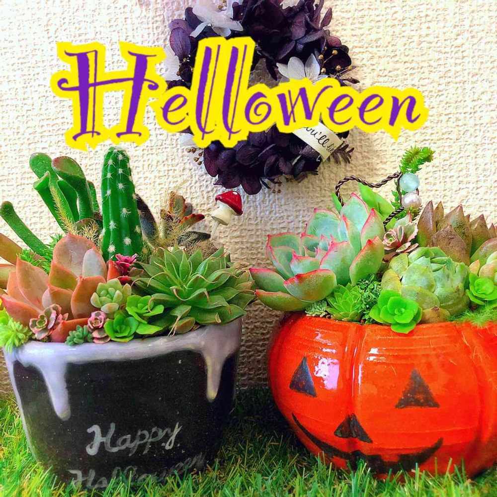 ハロウィンちーぽん鉢に寄せ植え🎃