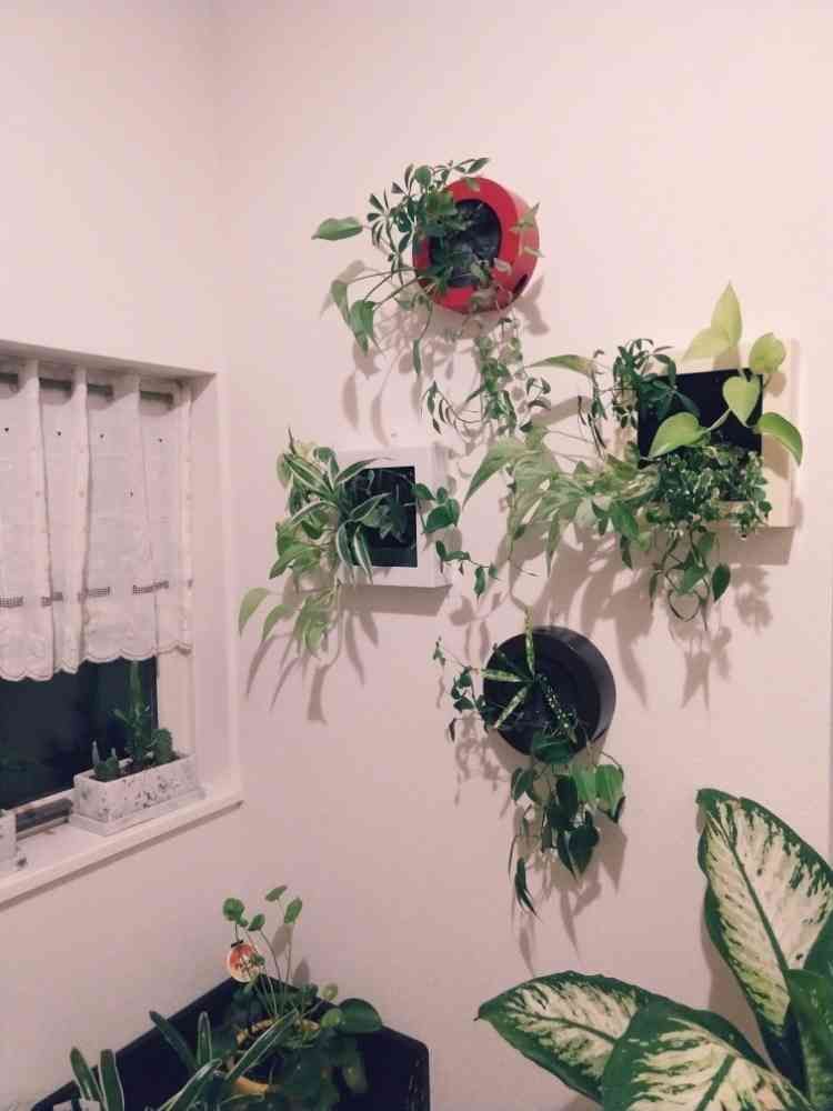 フォローありがとうございます。観葉植物を壁に❗考えましたね🎵