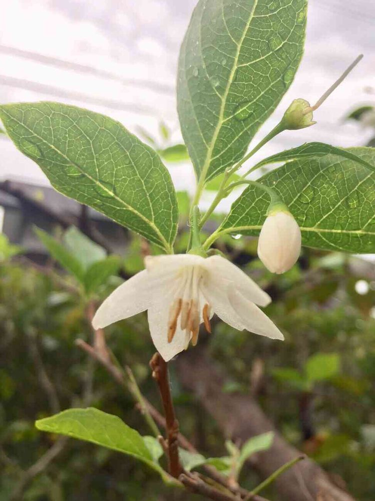 初夏に咲くえごの花が、季節を間違えたのか、今朝咲いていました👀
