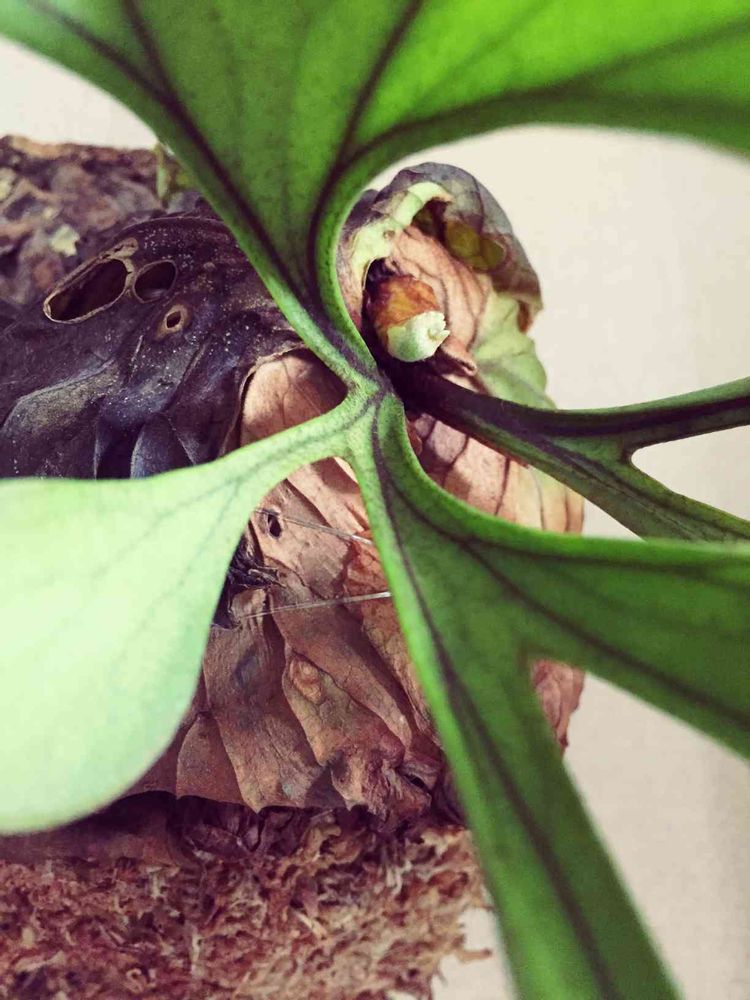 貯水葉は肥料焼けしてしまいせっかくの緑が真っ黒になってしまった(´Д` )他のビカクはみんな大丈夫なのにリドレイだけ弱いのかな(´・_・`)