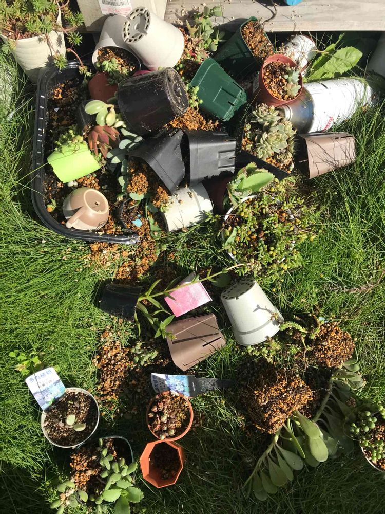 これでも夜中、雨と風の中外に出て多肉ちゃん達守ったんだけど、ここは棚ごと倒れた💦