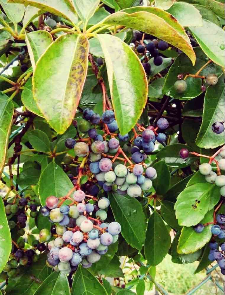 昨日の散歩で🌂 みーつけた💢 わざと遠回りしてみたの➰そうしたらなんと フェンスに蔦が絡まり、実がたくさん成りているのを発見✨ 😍これがヘンリーヅタの実⁉️