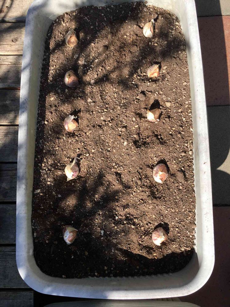 9月29日(土)にニンニク2Lを54ケプランターに植えました❗️昨年より大きい深めのプランターにしました😊
