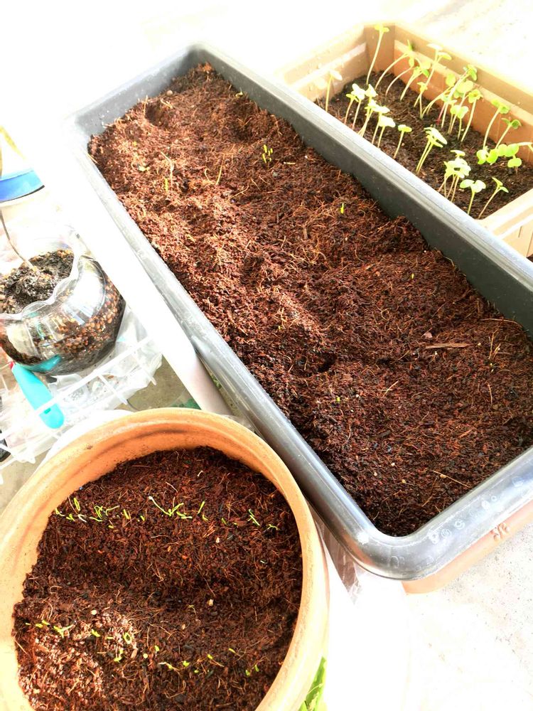 台風にも負けず、玉ねぎと葉ネギも芽を出しました(*´ω`*)