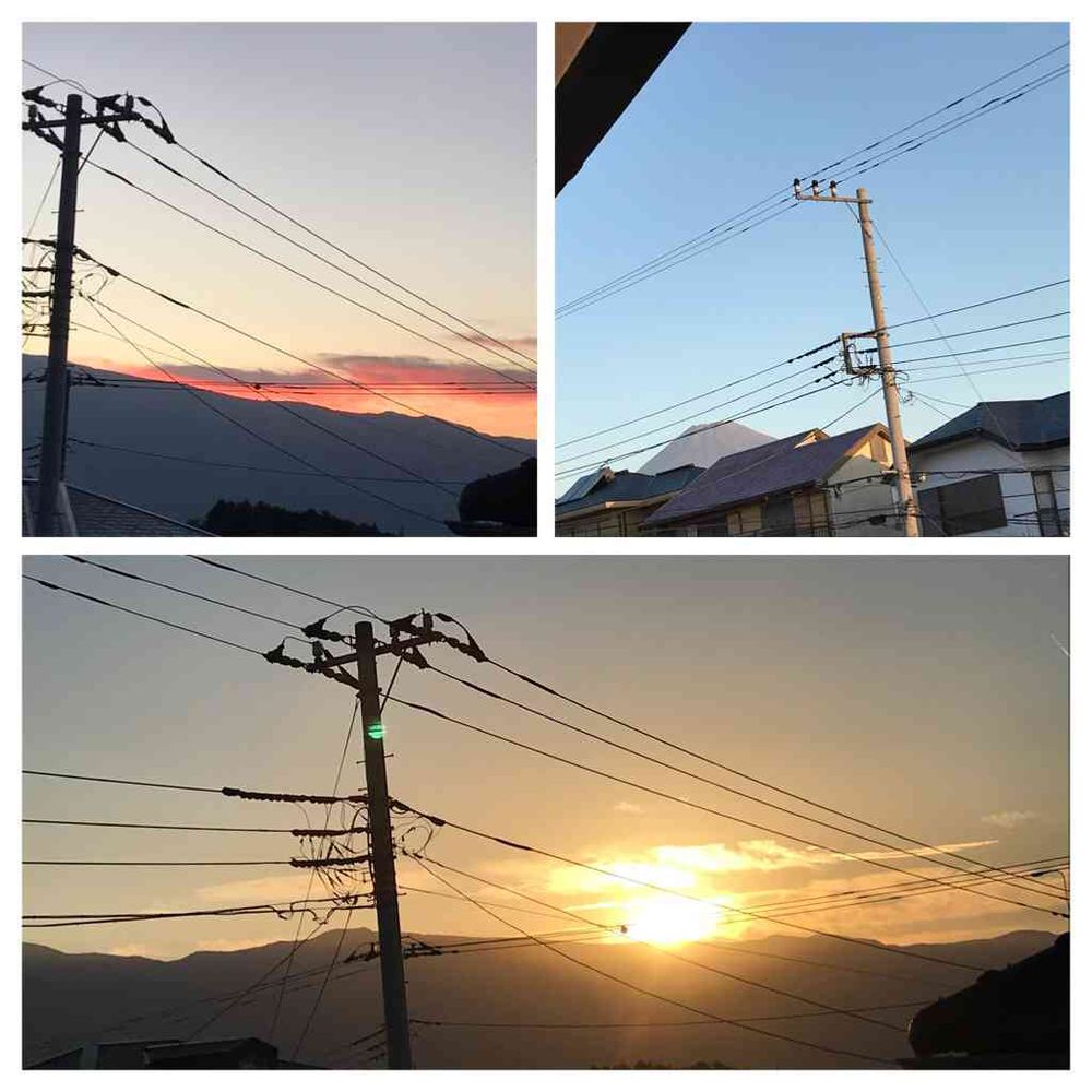 右を見ると箱根の山から朝焼け。数分後には朝日が昇って来ました❣️