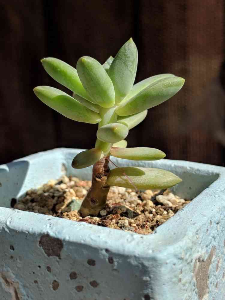 小さな株なのですが、来た時に葉元から赤くなり始め、葉がブニブニになり、新しい葉が出るも小さく赤くブニブニで、もうダメかと思ってた子です。