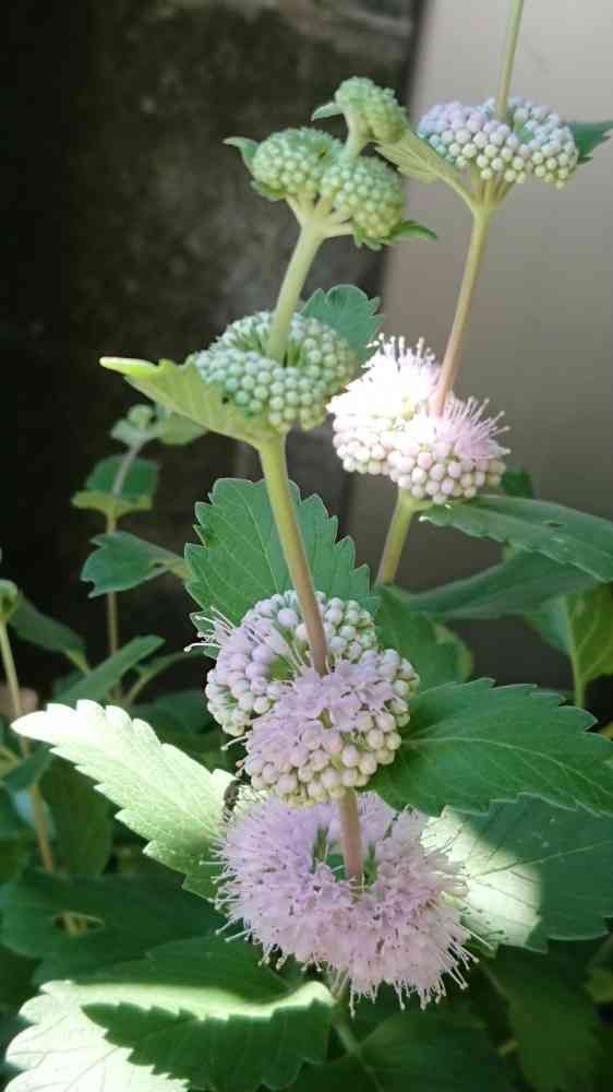茎は伸びて、茎の部の葉のわきに花を密集させます。