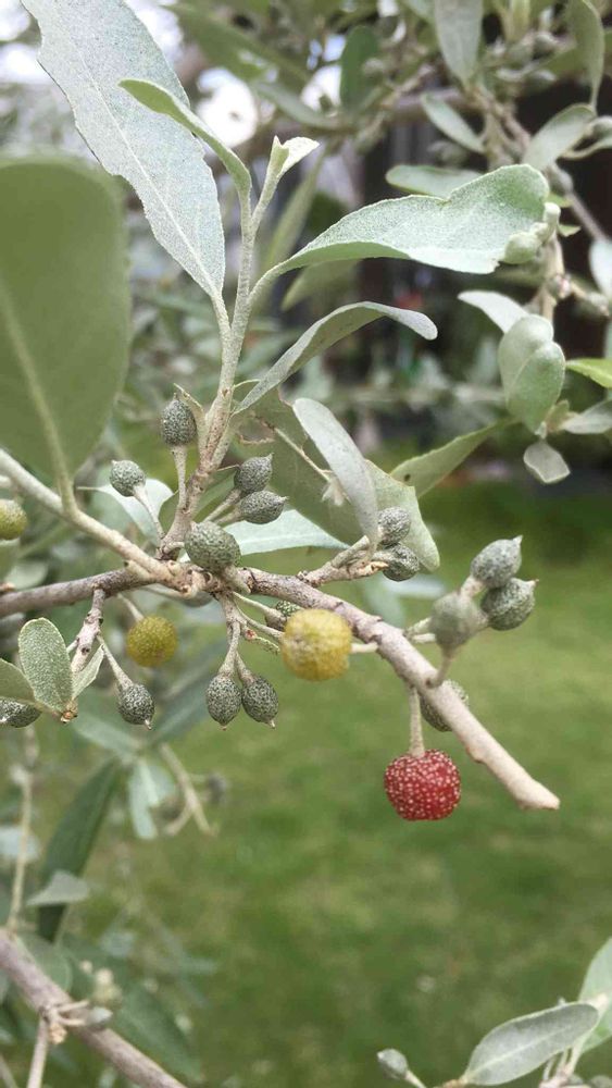 グミっぽい🤔と思って「グミ 銀色の葉」で検索かけたらロシアンオリーブ(細葉グミ)ってのがそっくりだったョ〜👍って言いに来たら〜