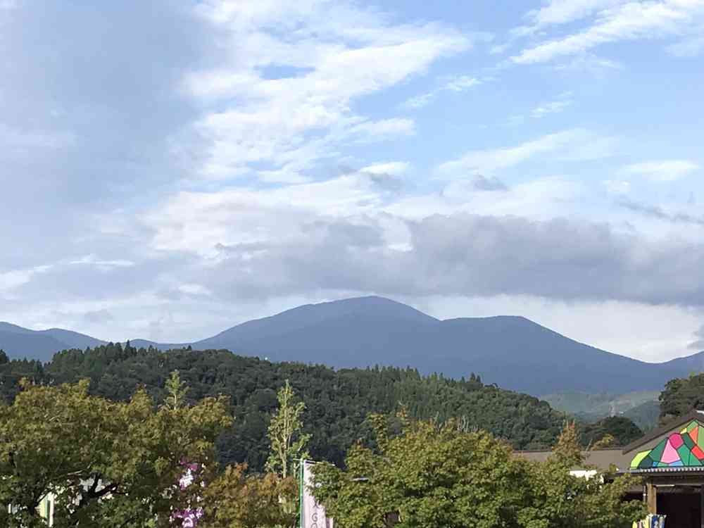 秋空の下、遠くに霧島山