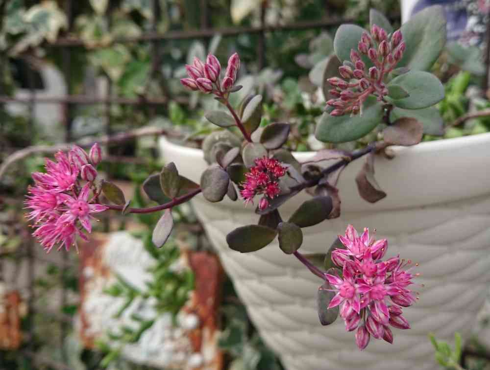 カラスミセバヤの葉の色に惹かれて見切り100円也でかったのだけど 花が咲き 濃いピンクの花に感動しました~♥ でも思うように育たないなぁ…😢