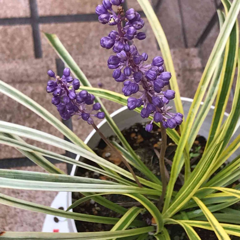 ヤブランを見つけました。斑入りです。可愛い紫色の花がいいですね〜