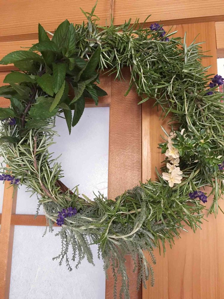 お庭のハーブで手作りリース