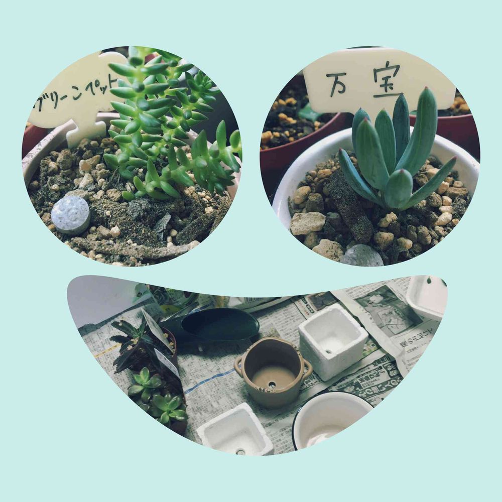 右上が植え替えした万宝さんです( ˶ˆ꒳ˆ˵ )