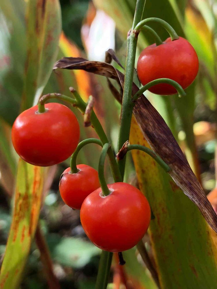 すずらんの実、赤くなったら ガーデンママにみせないとと、落ちてないか?少し緊張してました😅
