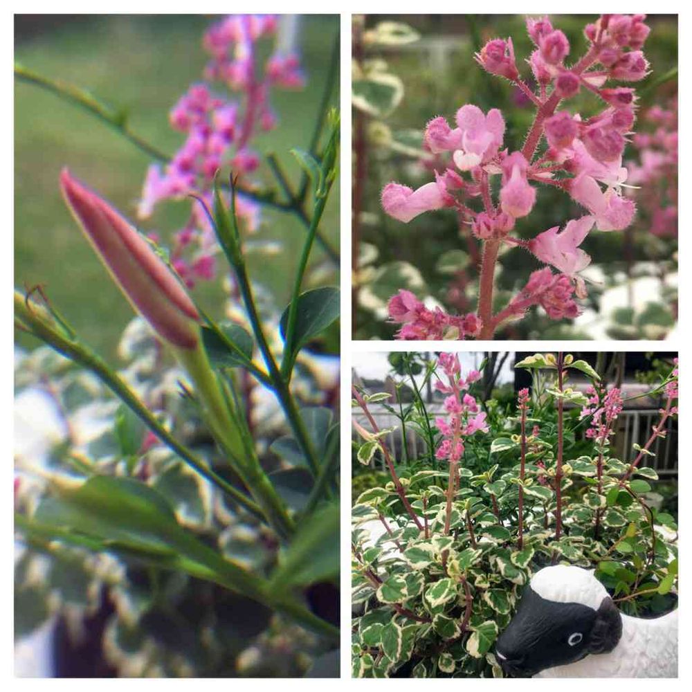 斑入り葉っぱも、スクッと伸びてピンクの小花をつける様子も好きです❤
