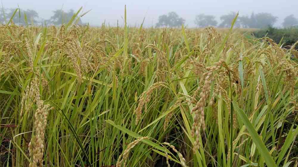 早朝の田んぼ。霧が出てなんだか幻想的だけど、朝露が着いてると稲刈り出来ないらしく、農家さんにとっては大変みたい。
