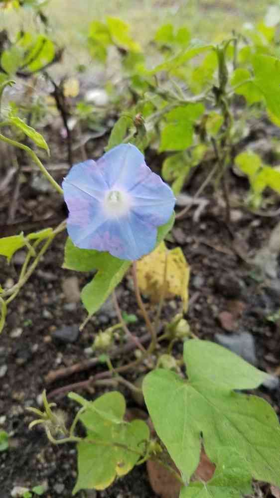 散歩で見つけたこのアサガオみたいな花はなんだろう?今の時期でもアサガオは咲くのかな?