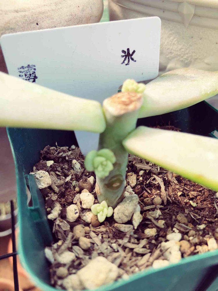 午後から雨の予報で少し肌寒い朝です。狩った時から徒長していた薄氷さんの胴切りの根元の方から可愛いいお子様が出てきました。💕