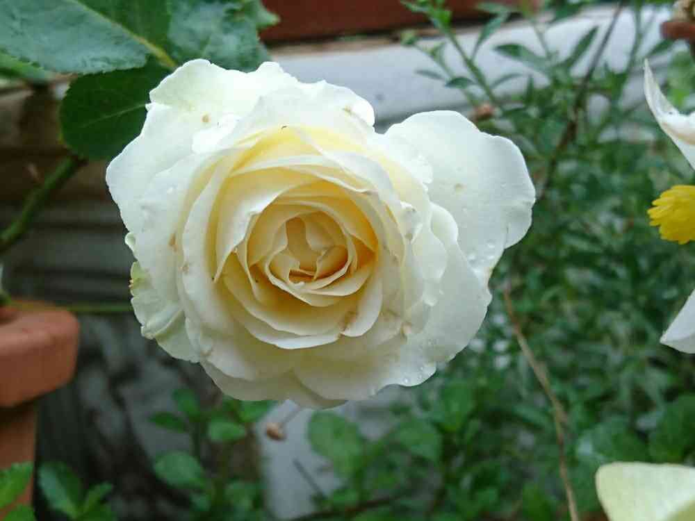 昨日蕾だったインフィニティーローズ雨に濡れながら開花です☺