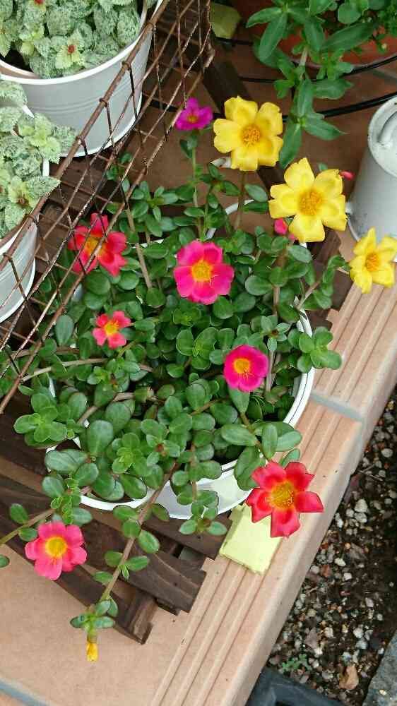 ポーチュラカっぽい葉っぱを植木鉢に広い集めておいたら 立派に咲きました~😉