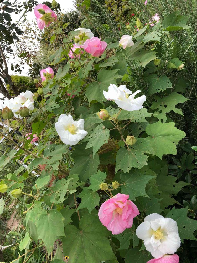 ♨️に行った次の日の朝⛅️我が家の酔芙蓉も元気に二色咲で賑やかです💟💗