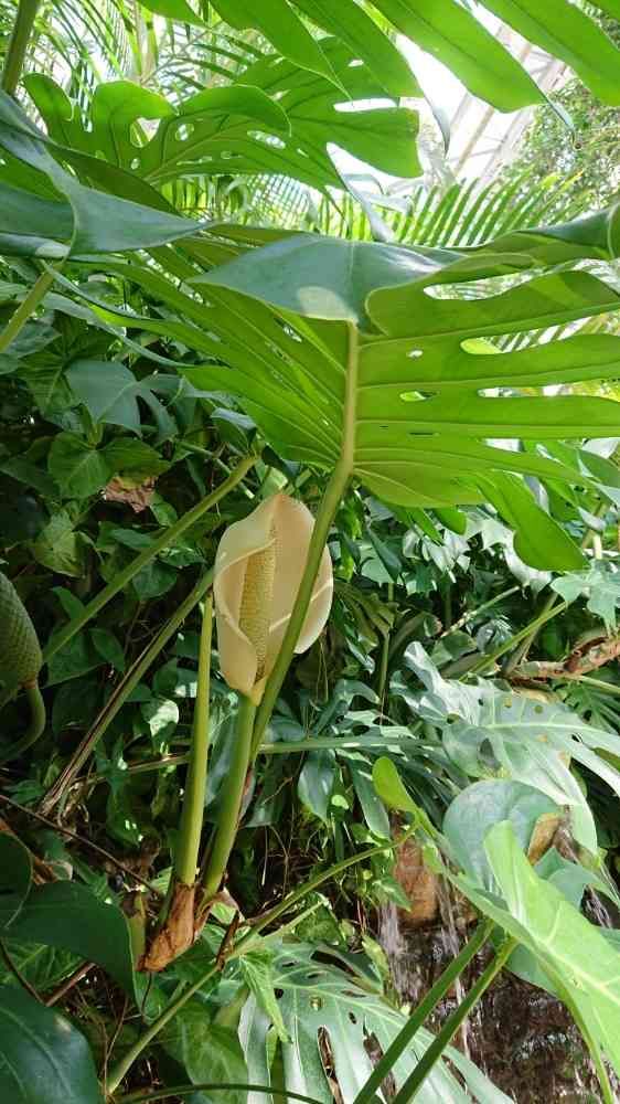 でかすぎやしませんか⁉️ モンステラ おまけに花まで咲いている カラーの花にそっくりね 温室で育てるとこんなに大きくなるんだね