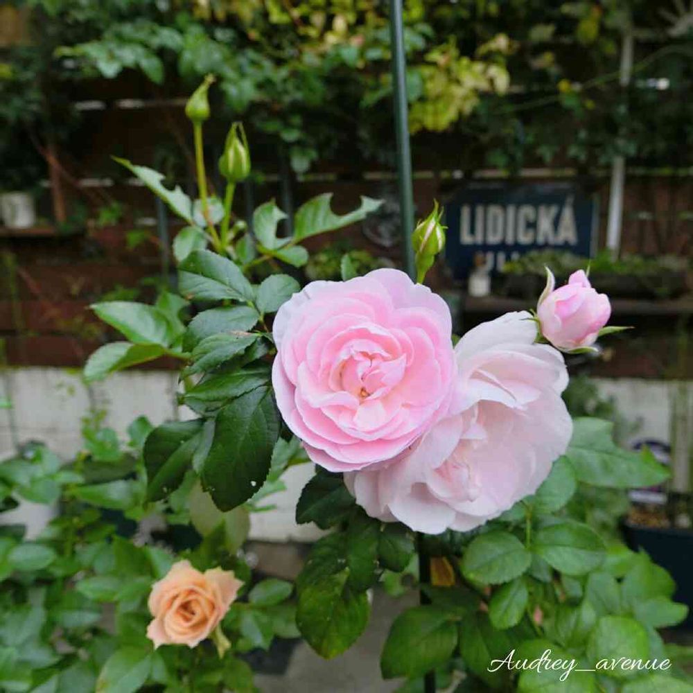 隣はアンティークレース🌹今の時期はちょっと小ぶりだけどいい色🧡