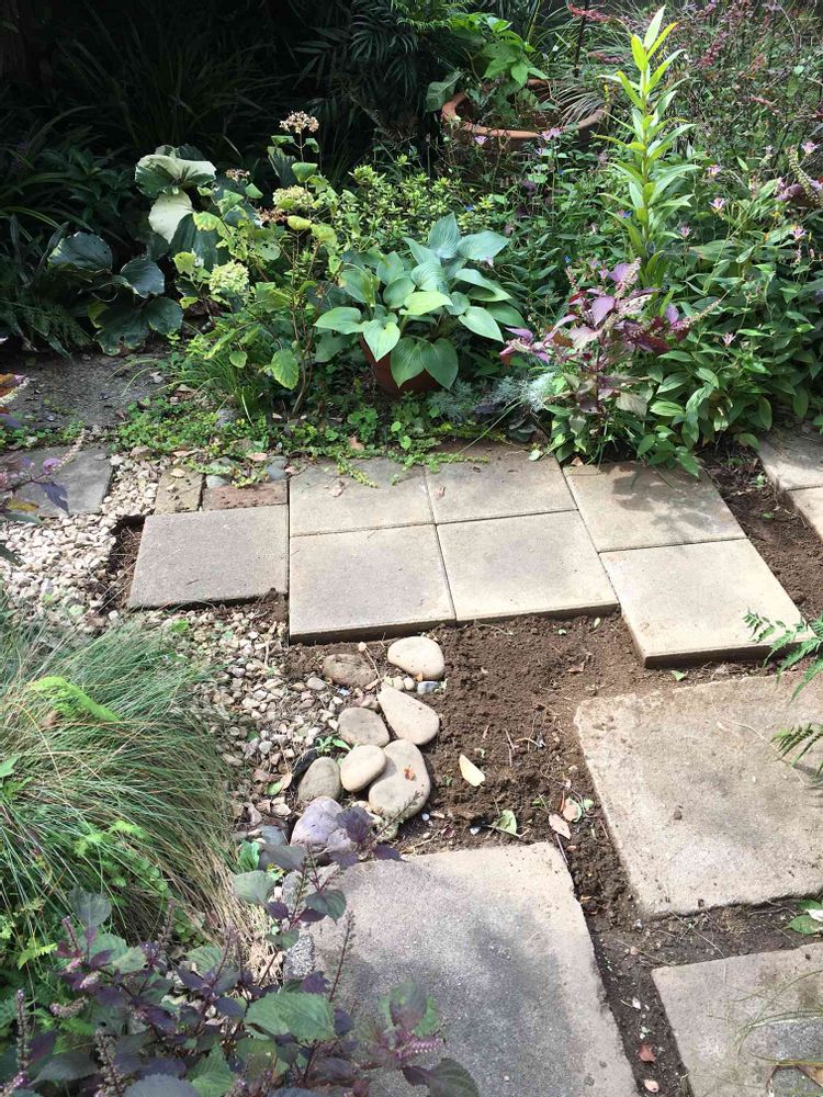 隙間を開けて並べてたコンクリート平板を