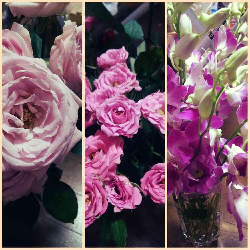 ピンク色の薔薇、ミニバラ、デンファレ可愛い〜!!😍気分もアガルね⤴️⤴️