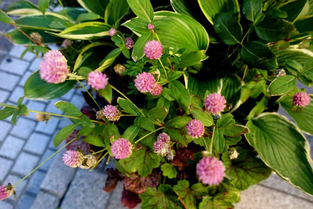こんばんは。夜になりましたが、今日のお花、センニチコウ。