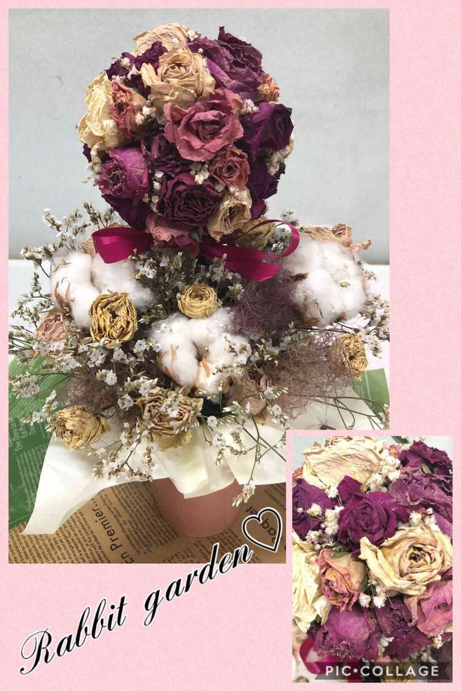 バラのドライフラワーで、バラのトピアリーをつくりました゚・*:.。❁