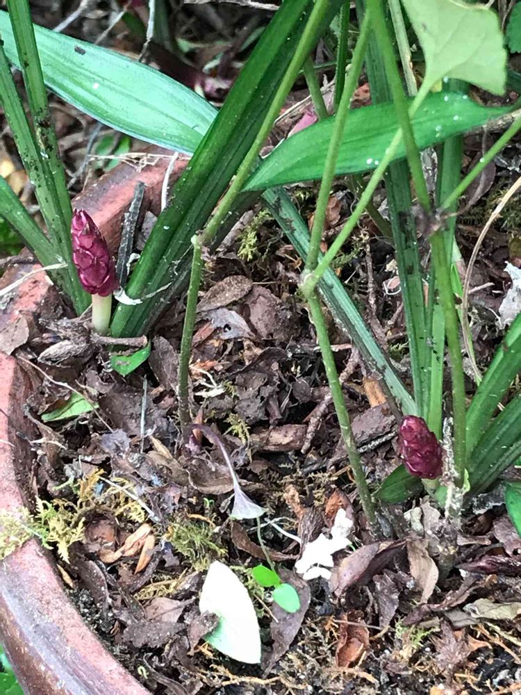 庭の手入れをしていたらキチジョウジソウが鉢まで伸びてきて蕾を付けていました