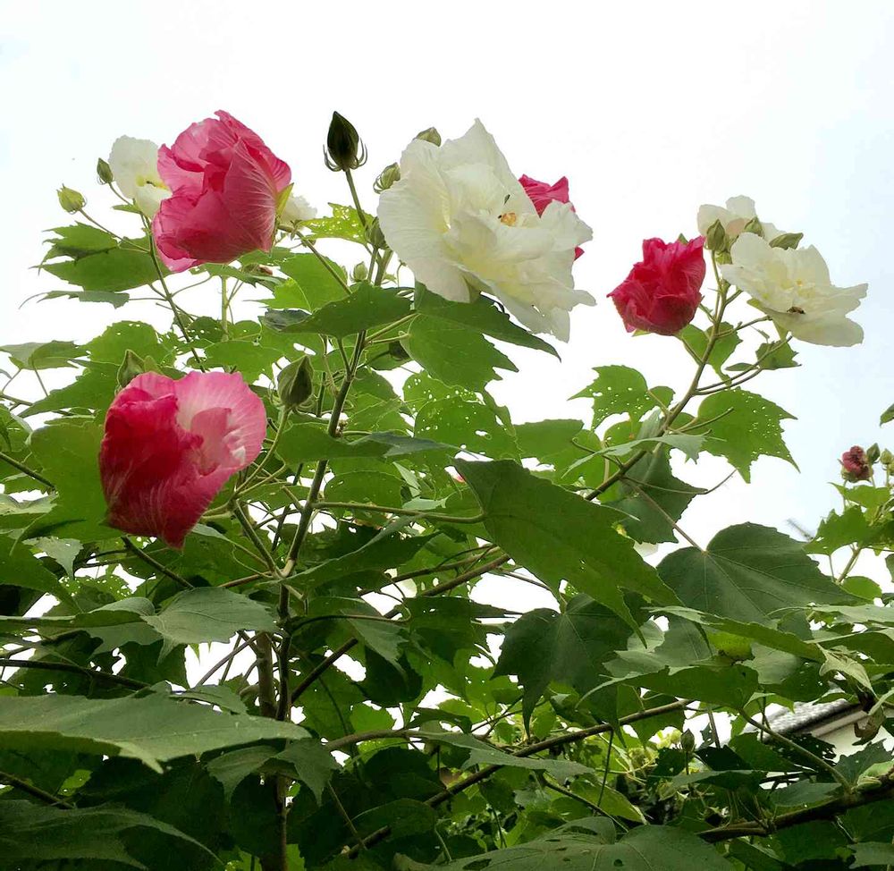 酔芙蓉ようやく色の変化撮れました🎶曇り空なのが残念💦