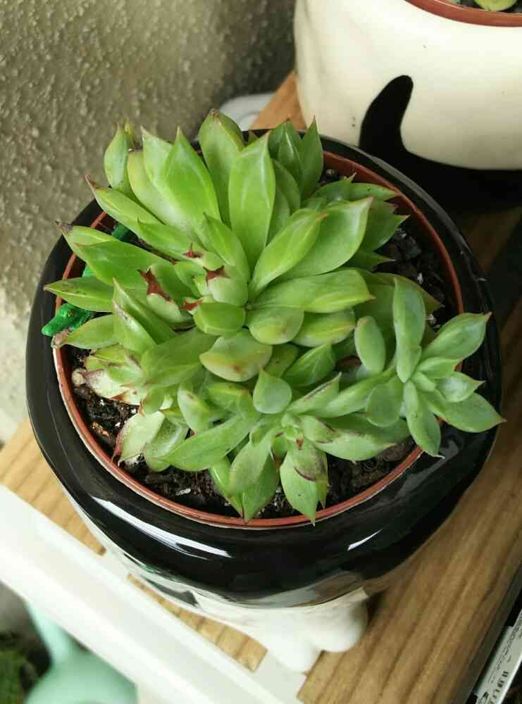 初夏にホームセンターかどこかで買った多肉植物だけど、元気なくて葉先が茶色になってます。