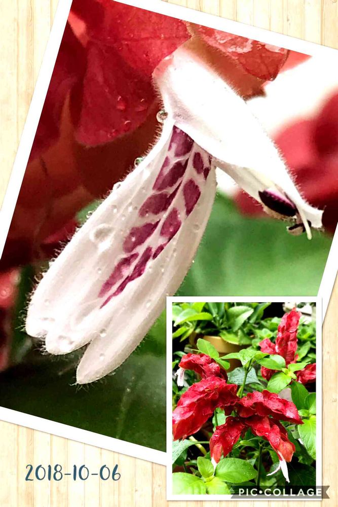 朱色の苞が重なったユニークな形がエビのように見えて美しいですが、その間から出る白いのが花なんですよ💕