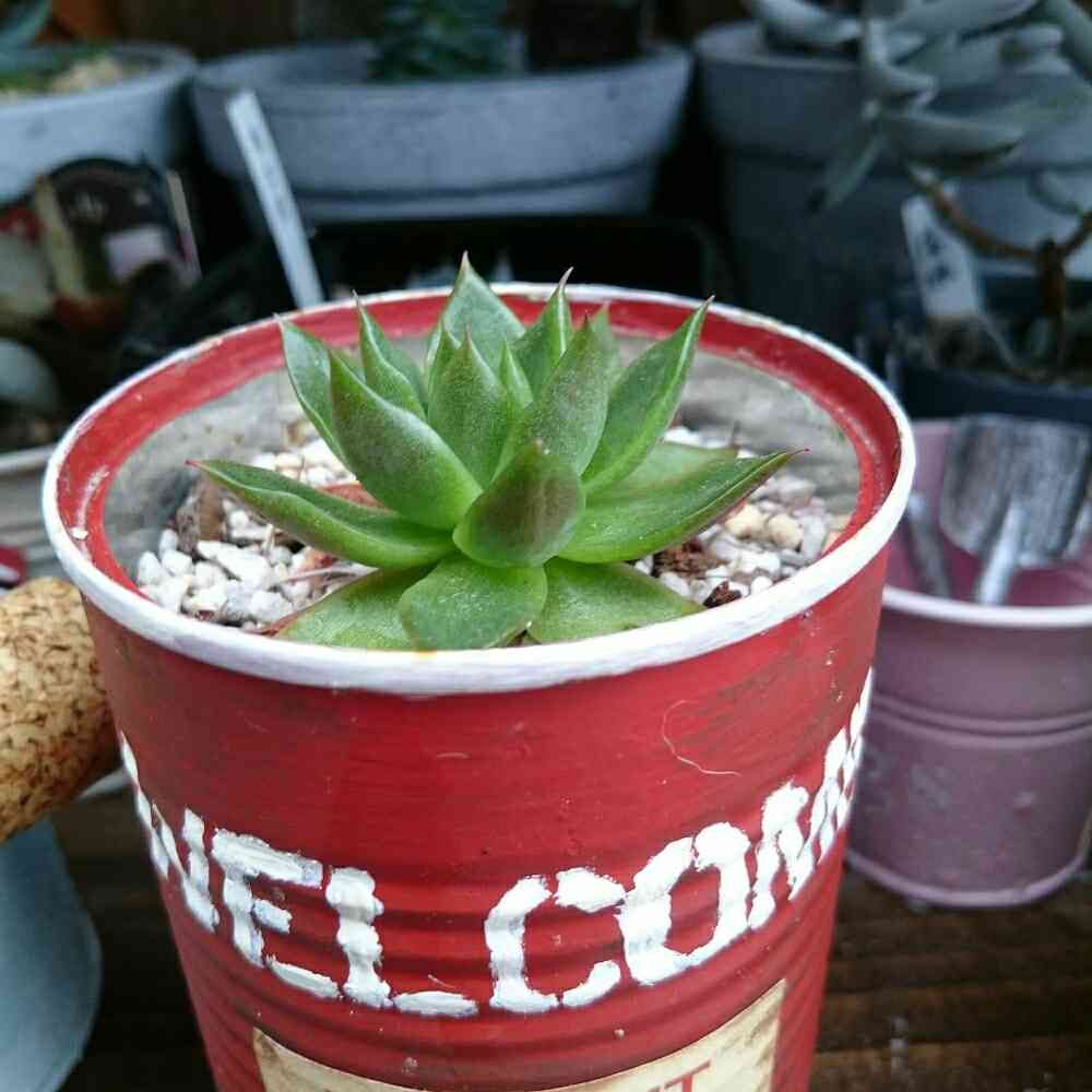 わたしのリメ缶初期作だねー😁アガボイデスさん赤くなるの楽しみだね〰︎(*✪▽✪*)
