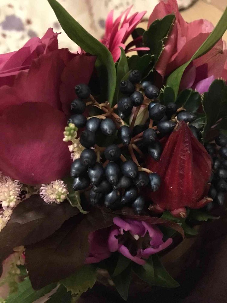 黒い実はビバーナム ティヌスで赤い方がハイビスカス ローゼルだと思いますよ😊