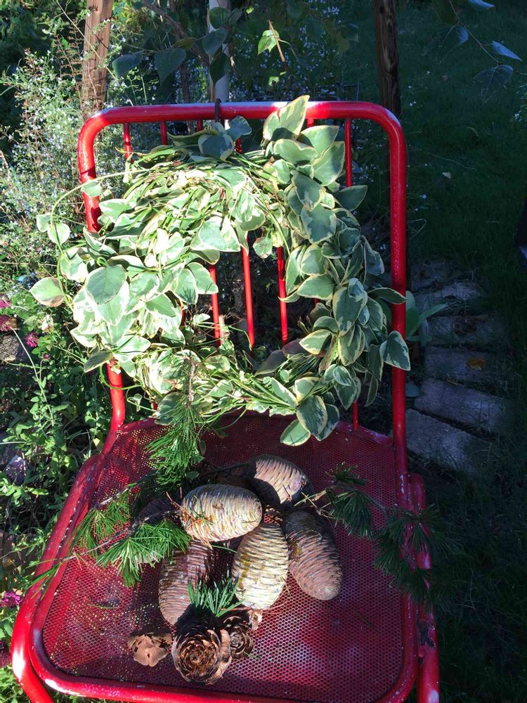 片付けながら 周りにあった ツルニチニチソウをドッサリ、ザックリ、ワイルドに丸めました💕